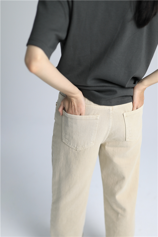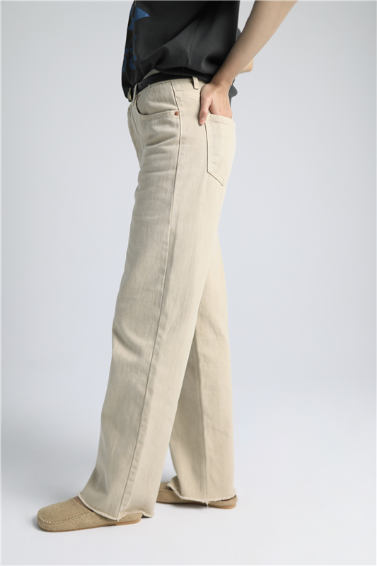 排釦鬚邊丹寧直筒褲