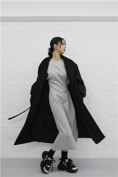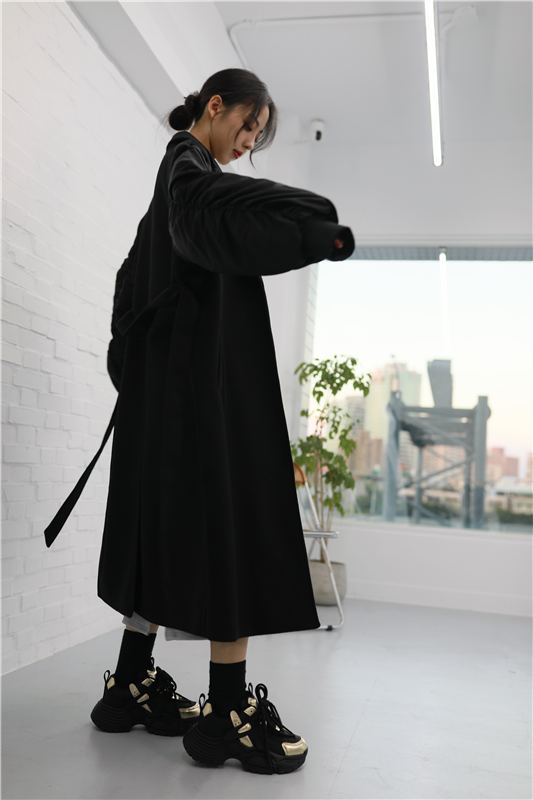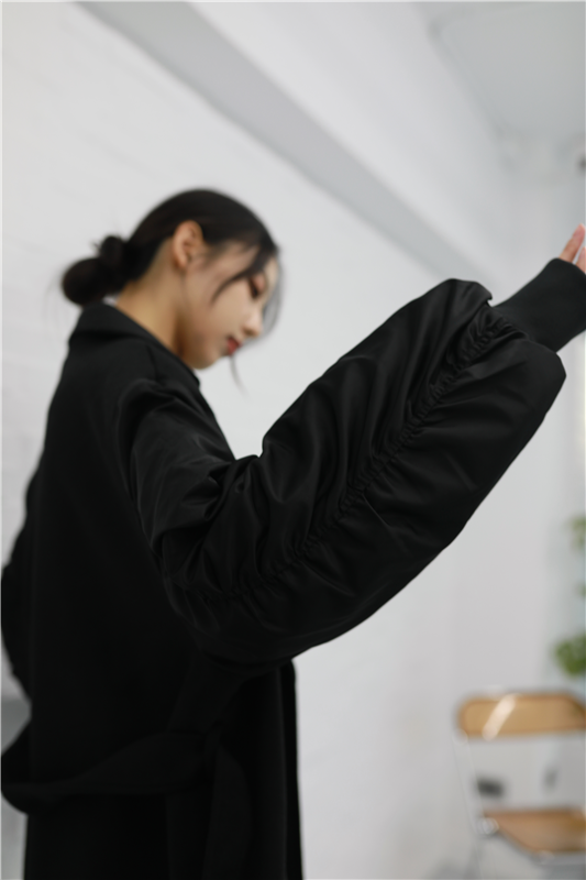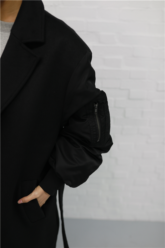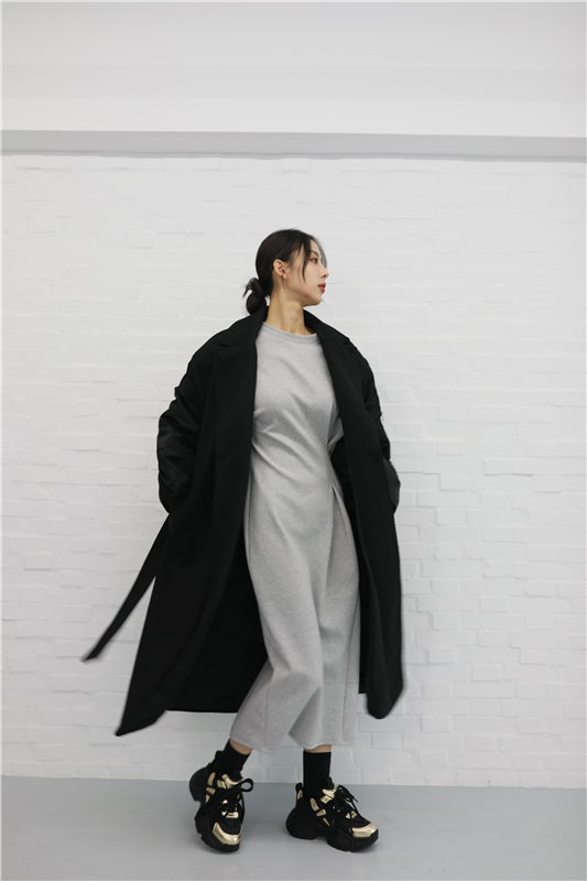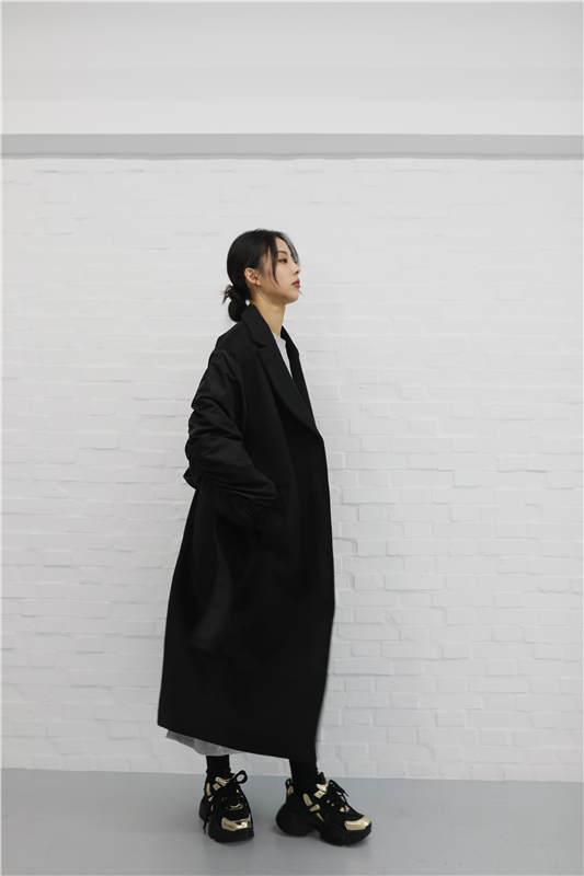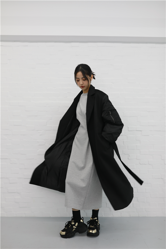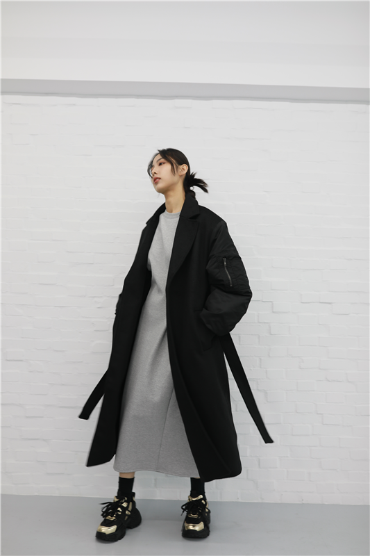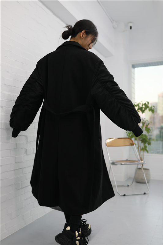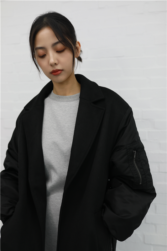 毛呢異材質接袖大衣