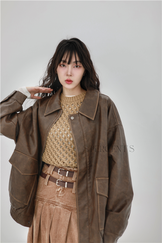 仿皮舊感寬外