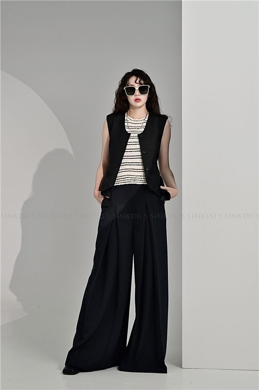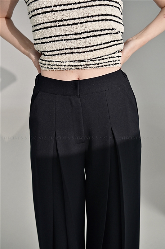 厚磅雪紡寬褶西褲
