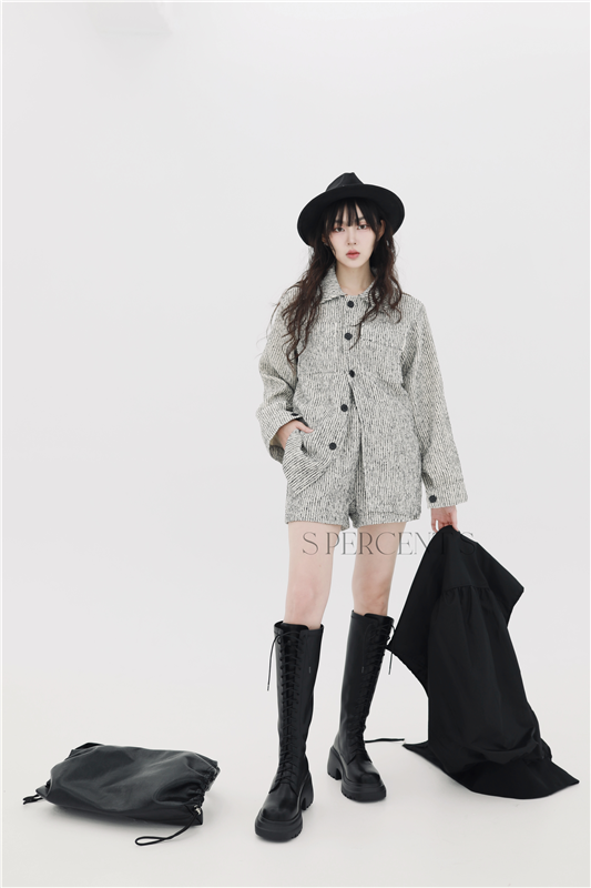 麻花線紋鬚邊套裝 短褲
